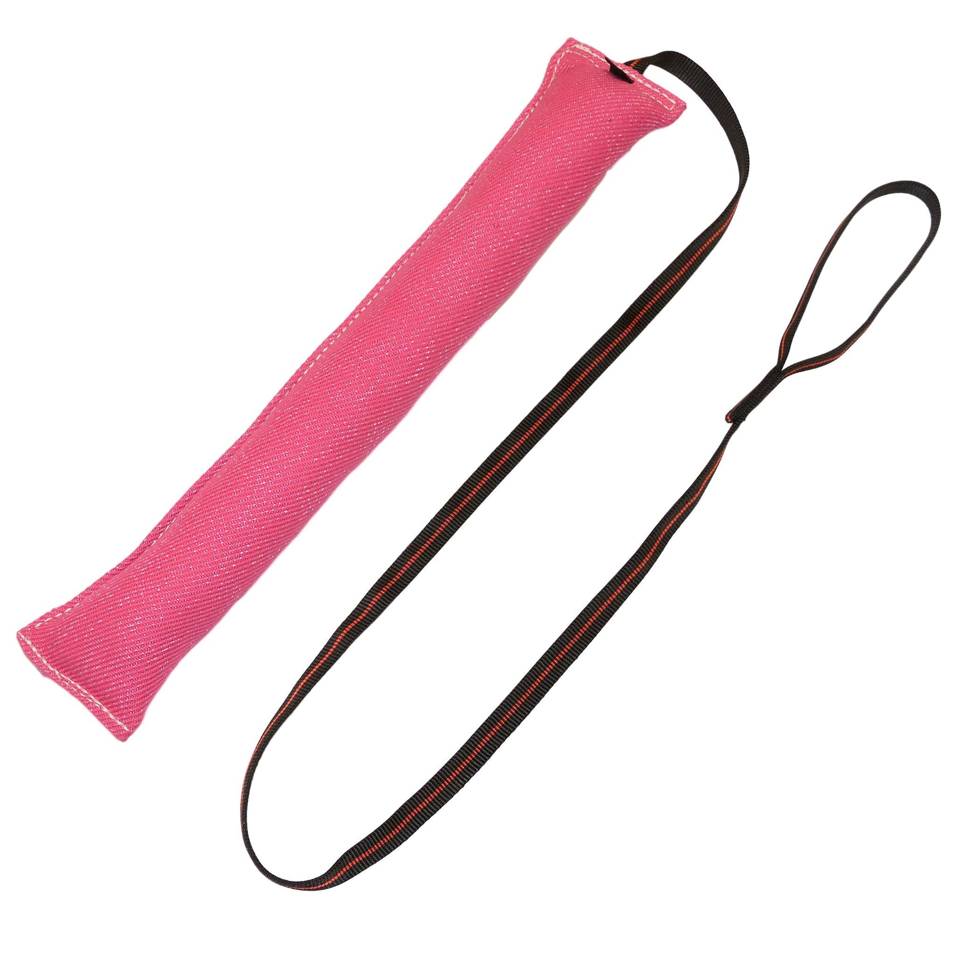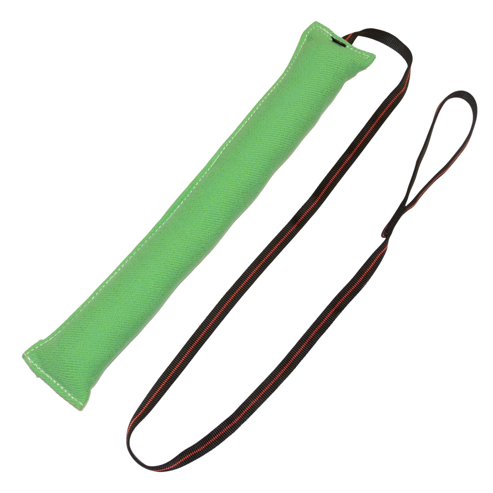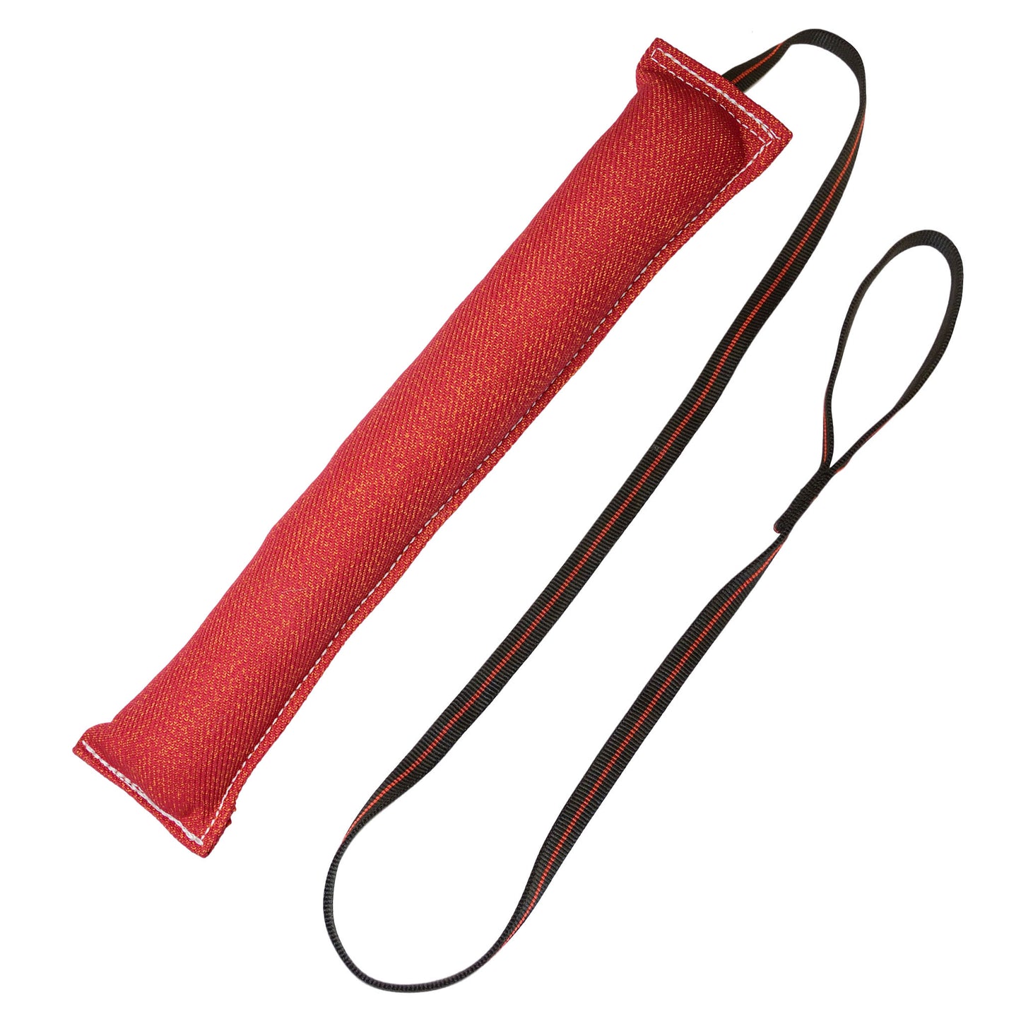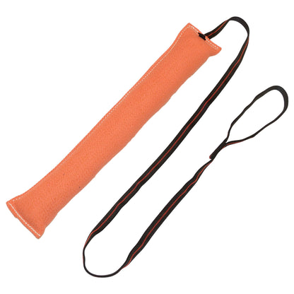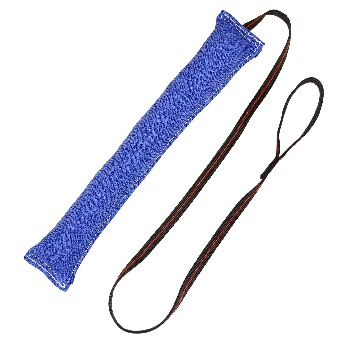 This a very popular tug toy for people who back tie a young dog to start them in bite work. It is a good step before going to the sleeve. Sewn with heavy 207 commercial thread and complete with a 5' handle made out of our very comfortable and strong 3/4" MaxTac Arrow tubular webbing. These large bite suit training tug toys are a great grip builder for young dogs.