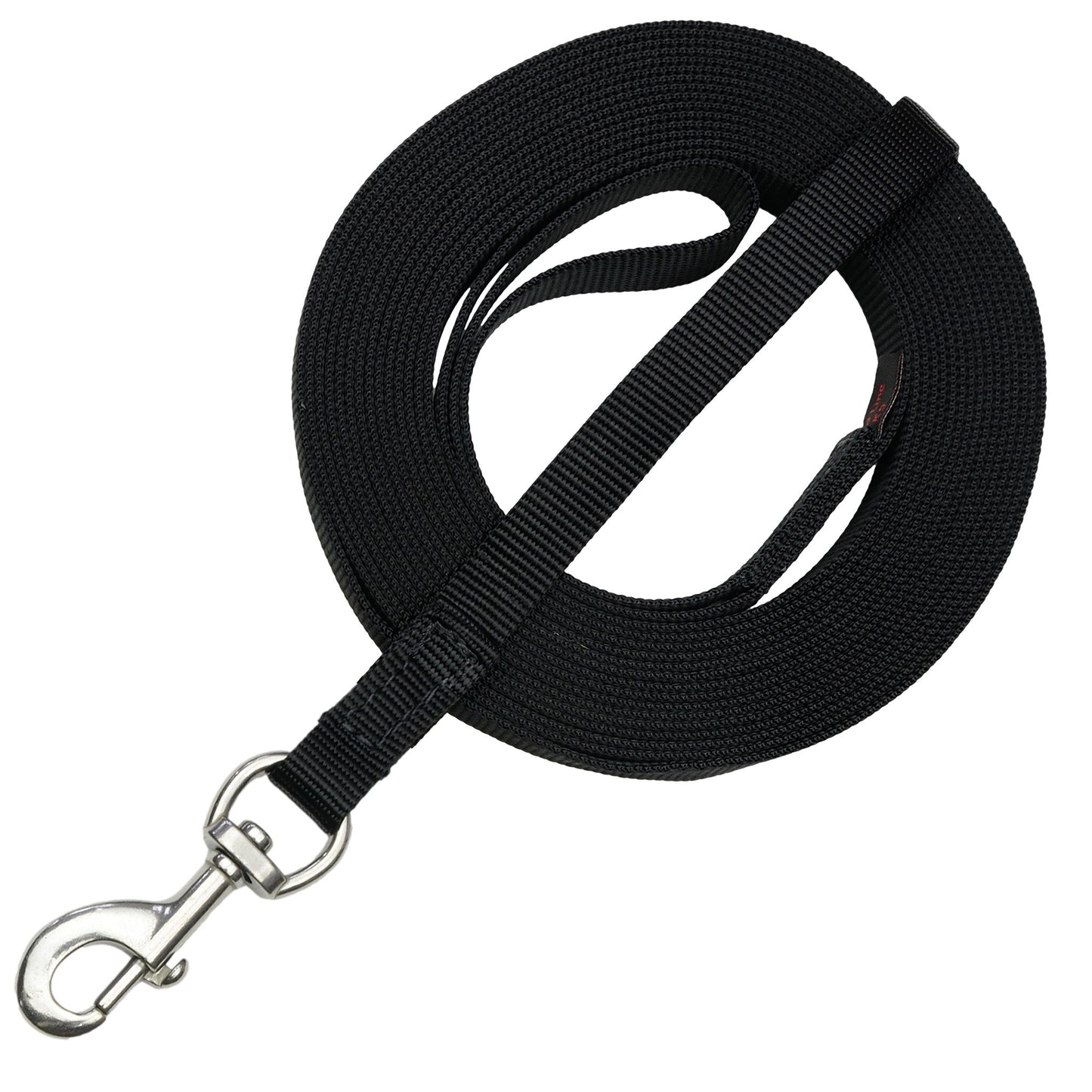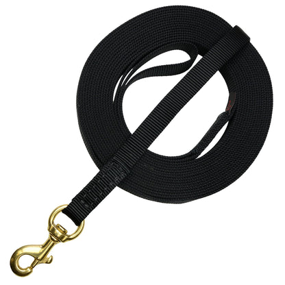 Our standard flat nylon lines offer an unbeatable cost to performance ratio. 3/4" wide and finished with your choice of heavy duty brass or stainless clasp, these lines are perfect for tie outs or other long line work.