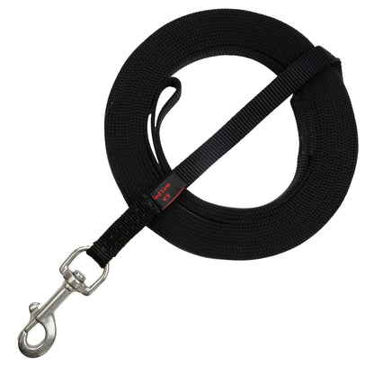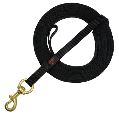 Our standard flat nylon lines offer an unbeatable cost to performance ratio. 5/8" wide and finished with your choice of heavy duty brass or stainless clasp, these lines are perfect for tie outs or other long line work.