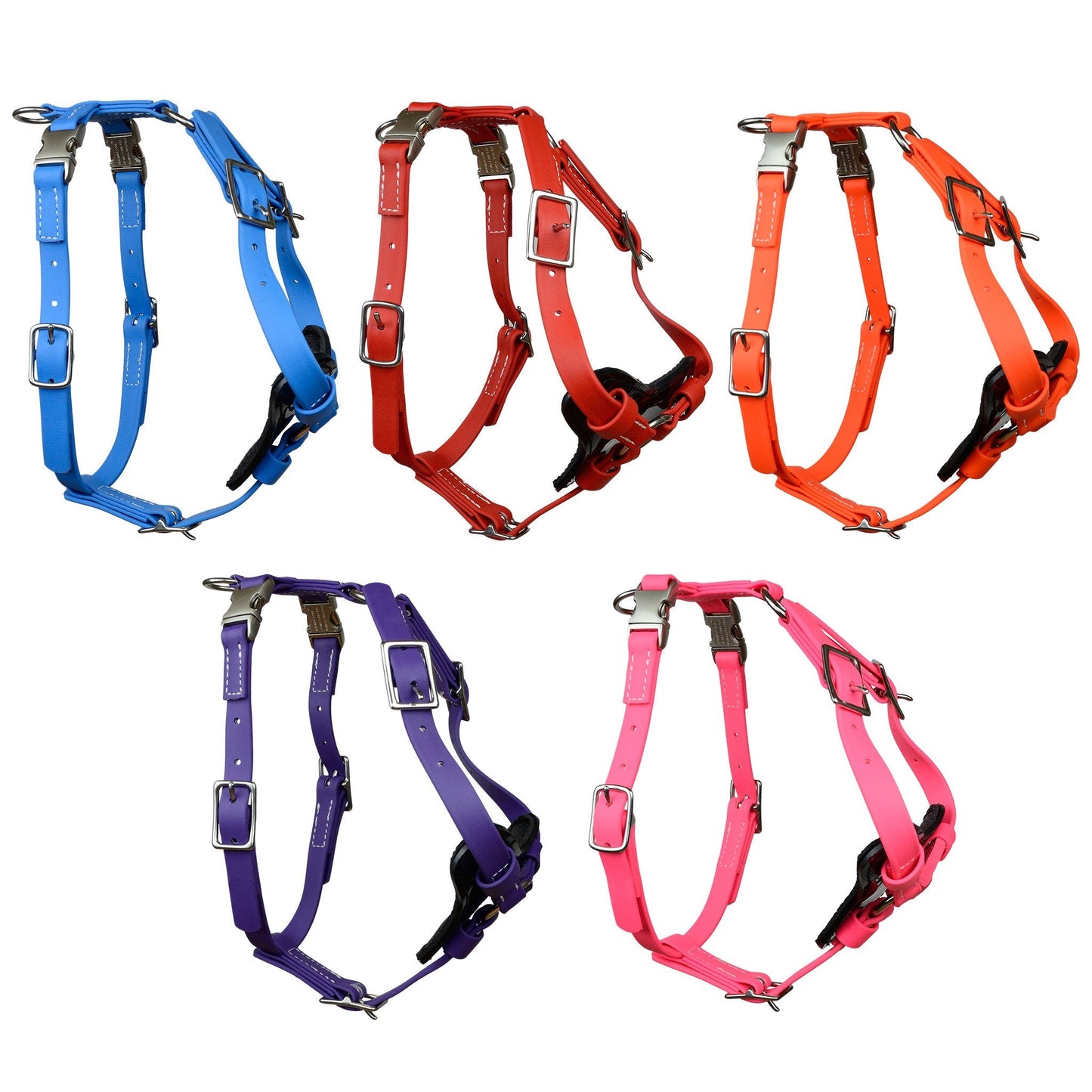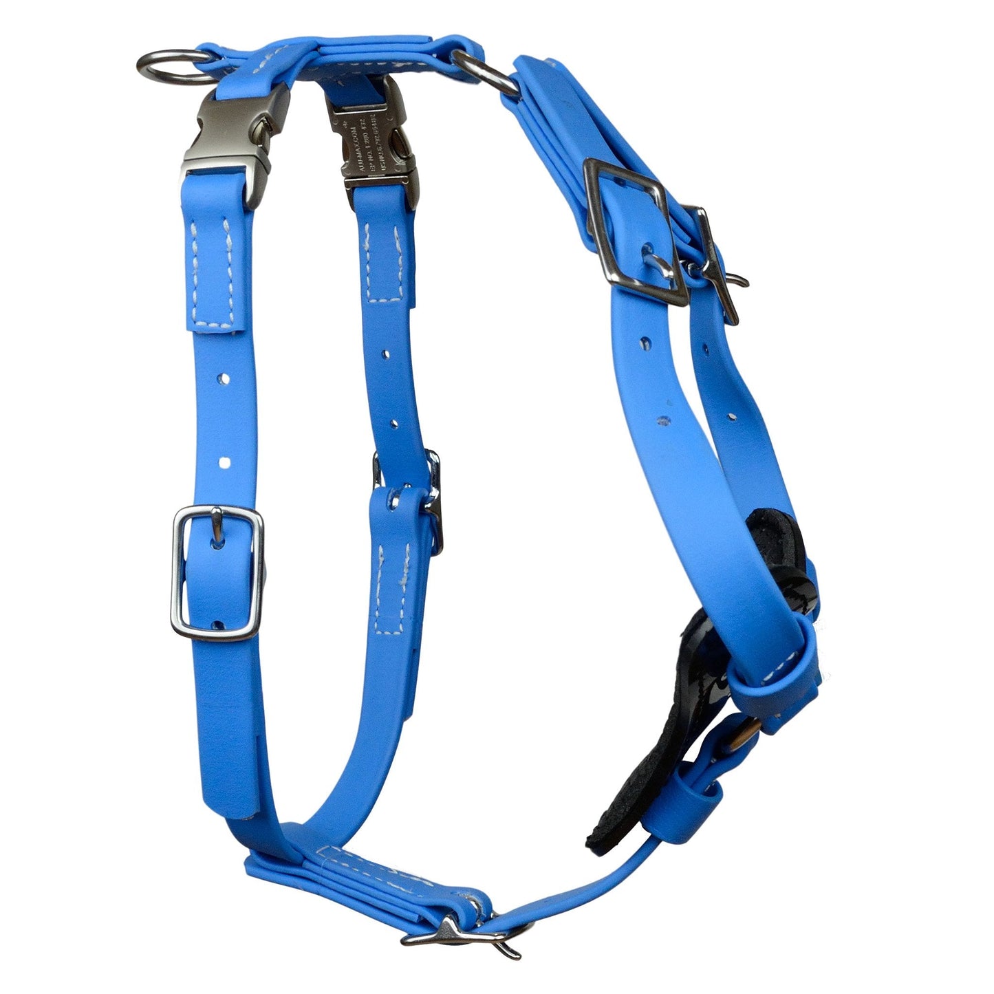 Made from ultra durable 520 Biothane®, and finished with stainless steel hardware, this harness is truly an all-purpose hardness. Biothane is completely waterproof and the removable breast plate is backed with Neoporene making this harness ideal for water sports and wet climates. Available in your favorite colors, match your Biothane harness to your favorite Biothane leash.