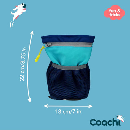 This extra large, easy access treat bag makes the perfect accessory for dog walking or training. Keep treats secure in the main pouch with a hidden magnetic closure. The wide mouth allows for easy access for quick rewards. Includes a secure zipped front pocket large enough to hold a mobile phone and a large mesh pocket perfect for poops bags, clickers, or other accessories.