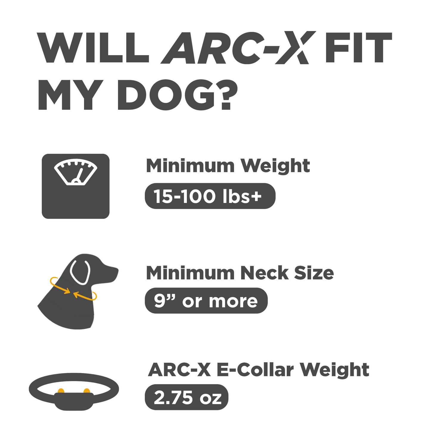Introducing ARC-X. Designed 30% slimmer than the 1900X, with Dogtra's proprietary ergo curve that contours naturally to your dog. At just 2.75 oz, it's so light your dog will forget it's there. Advanced XPP vibration, audible tone, and brightest LED. 3/4-mile range, expandable to 3 dogs. Completely waterproof. Training, reimagined.