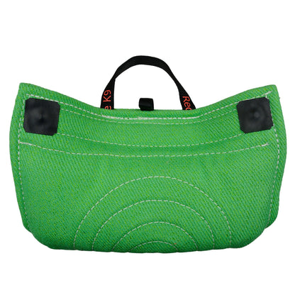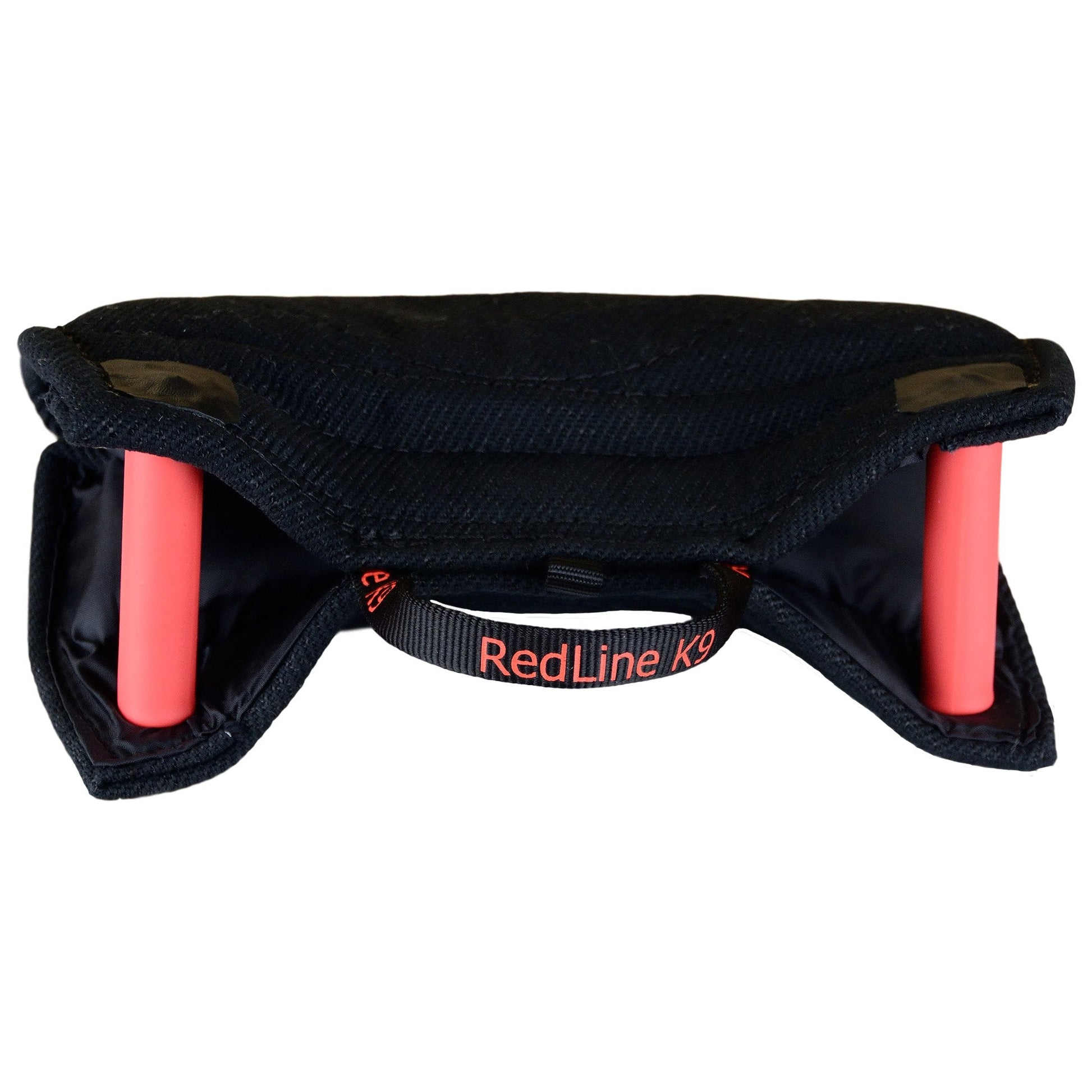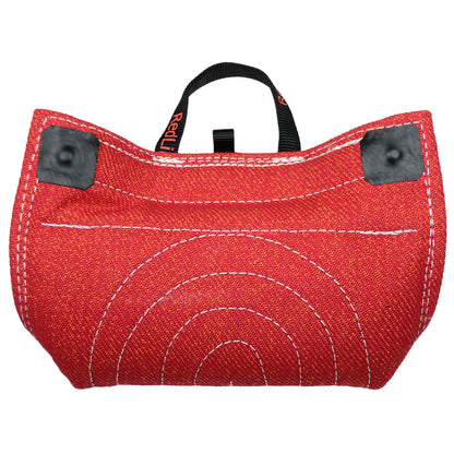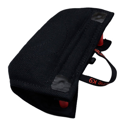 The Redline K-9 French Linen Bite Wedge With Hidden Handles is an excellent targeting and grip building toy. Made with the same high quality French Linen we make bite suit tugs with with and finished with two hidden handles. The handle design makes it easy to give a correct presentation to the dog every time while preventing injury to your hands. This wedge is not too hard for a young dog, but firm enough to be used when stepping back and re-teaching targeting.