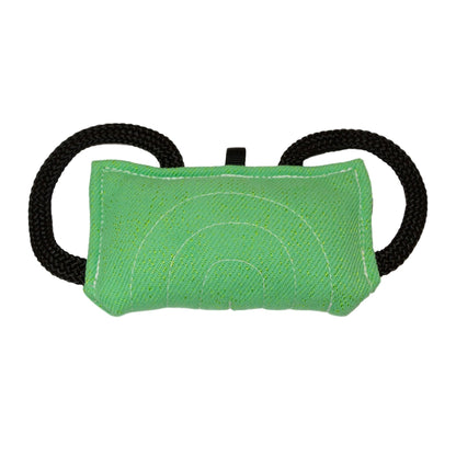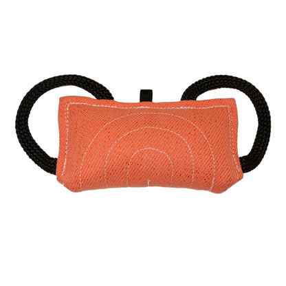 The Redline K-9 Iska Tug is perfect for puppy bite development or as a reward for adult dogs. This compact unique shaped tug is made from durable bite suit material and is finished with soft rope handles.