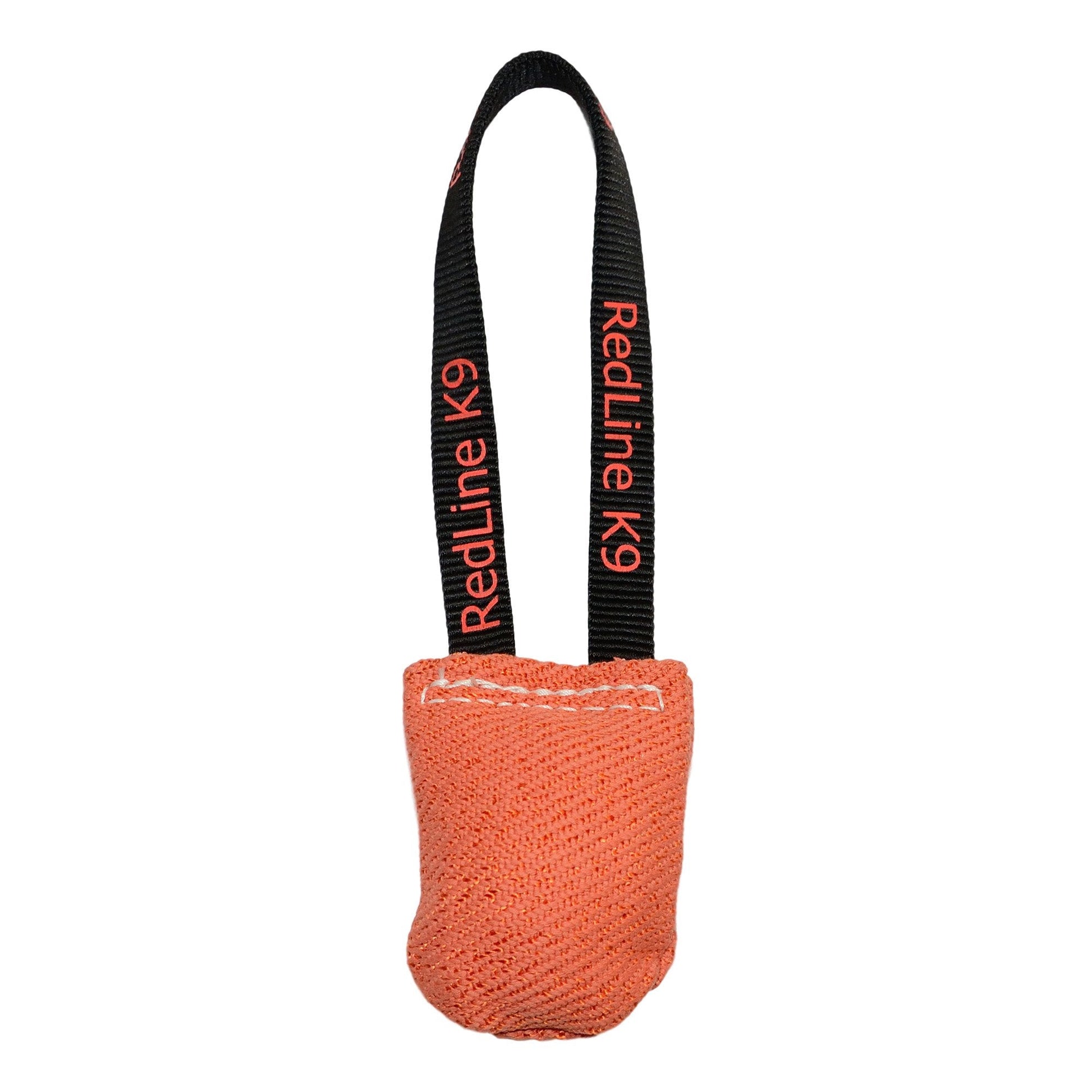 Toy is 3 Inches wide and 4 Inches long before stuffing. Finished with a strong nylon handle large enough to fit your hand through for hard playing dogs. All Redline K-9 Bite Suit Tugs are sewn with heavy duty 207 commercial thread. Available in 7 fun colors with or without squeaker.