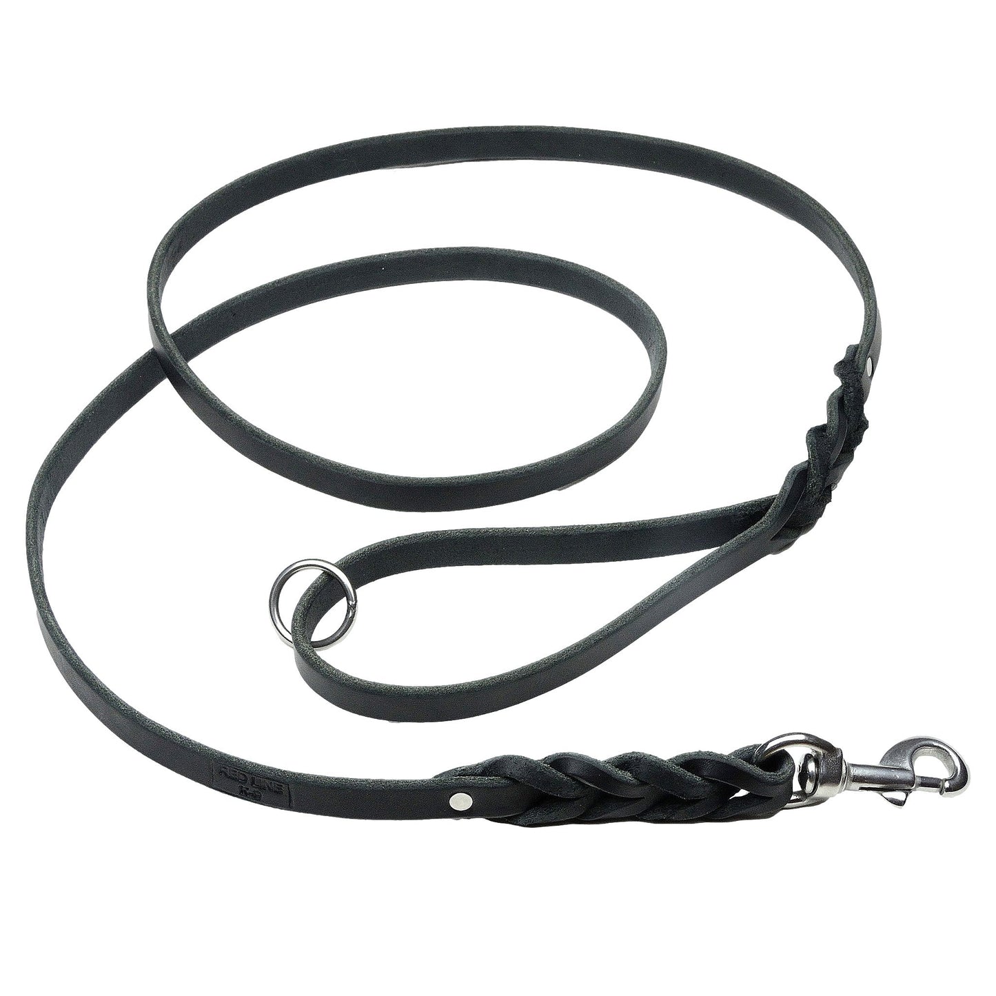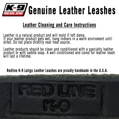 Our Redline K-9 Latigo Leather Leash is hand crafted by Amish craftsmen. Made with slot braided ends and beveled edges and finished with stainless steel hardware, you won't find a better quality leather dog leash at these prices anywhere. All lengths 6' or less feature a stainlesss o-ring in the handle.