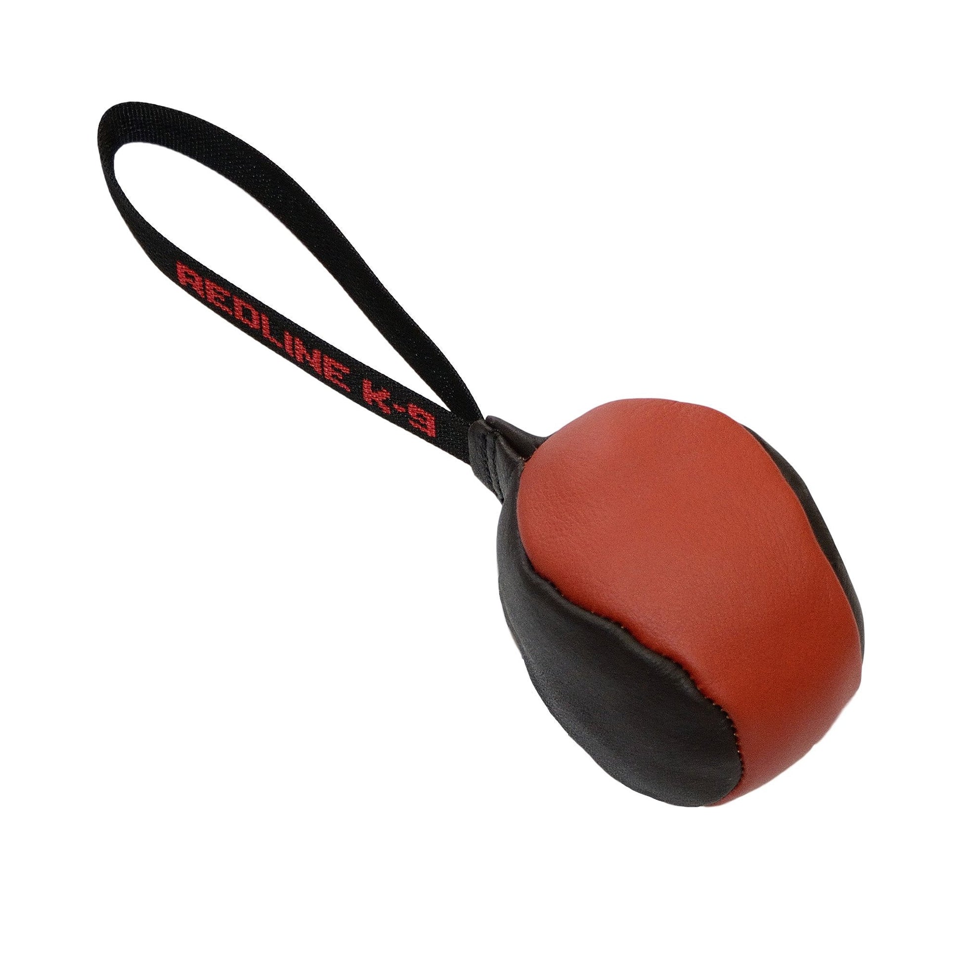 The Redline K-9 Soft Leather Reward Ball is made from our soft grain leather and finished with a sturdy nylon handle for throwing. This ball is designed to be a high value reward and is not meant for strong pulling or as a chew toy.