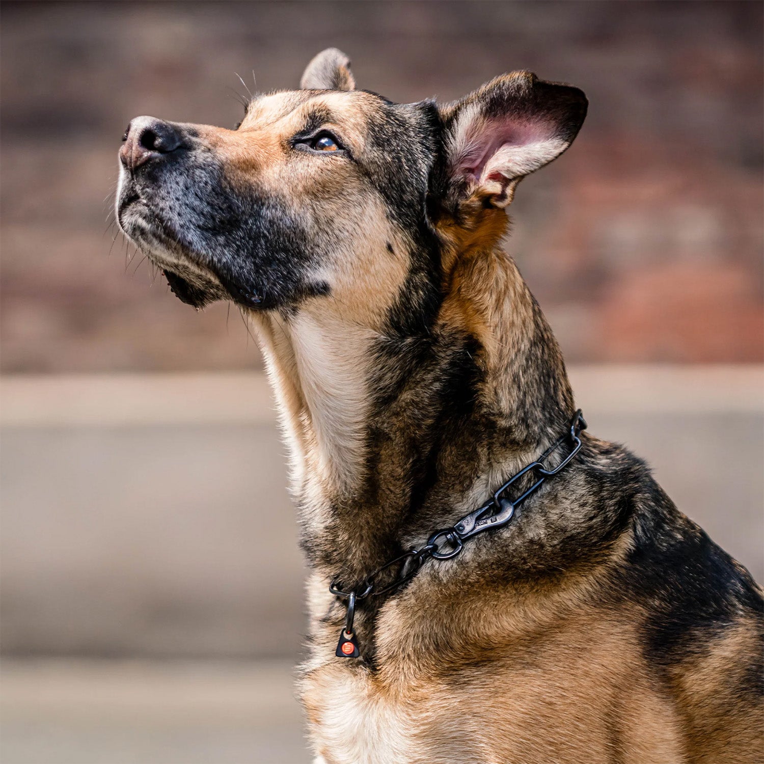 Designed for medium to large dogs, this Stainless Steel Black Adjustable Fursaver Collar with SPRENGER Hook ensures optimal fit and durability. Made from 3mm gauge metal, this collar is both strong and durable and features an assembly chain with signature SPRENGER hook for easy size customization. Add 2-3"+ to your dog's neck measurement for a flexible fit.