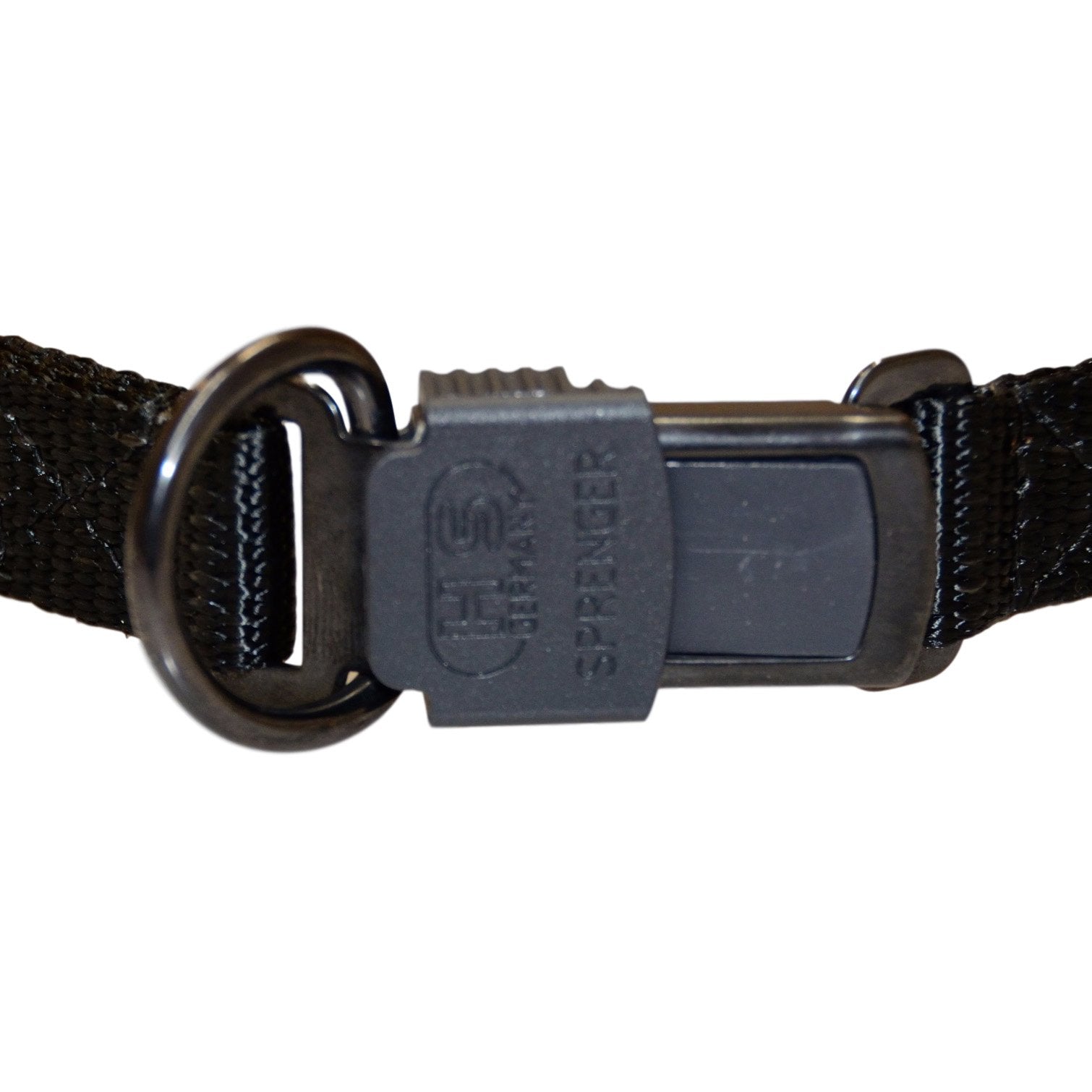 Herm Sprenger prong collars have long been considered the gold standard for prong collars. These collars are made in Germany from high quality stainless steeland anodized black. The black color blends nicely with dark colored dogs and helps reduce the visibility of the prong collar for sensitive environments. Click Lock collars do not have a martingale chain and area instead finished with a secure buckle for easy on and off.