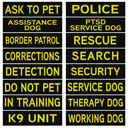 Our Vinyl Non-Reflective ID Patches attach easily to your Redline K-9 harness or collar with heavy-duty VELCRO®. At 1.5" wide and 6" long, these badges are designed to fit our Service Dog, Patrol Dog, Multi Purpose, Yurkiw and Ergo harnesses as well as our MacTac ID Collars.